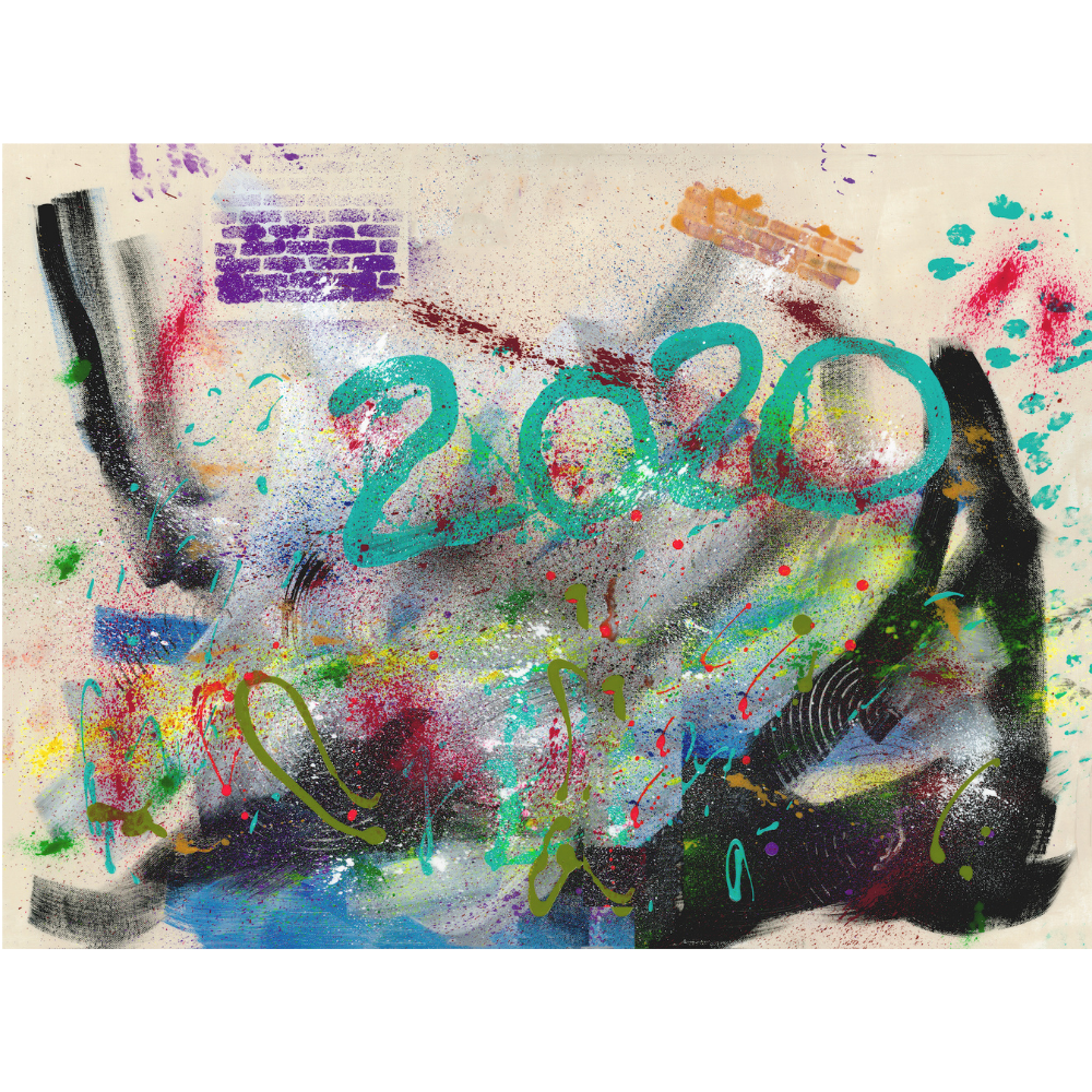 Title: Happy 2020! Abstract Acrylic Painting 23.6″ X 31.5″ X 1.5” / 60 cm X 80 cm X 3.81 cm Canvas Painted: 12/31/2019 Catalog # ADA0078
